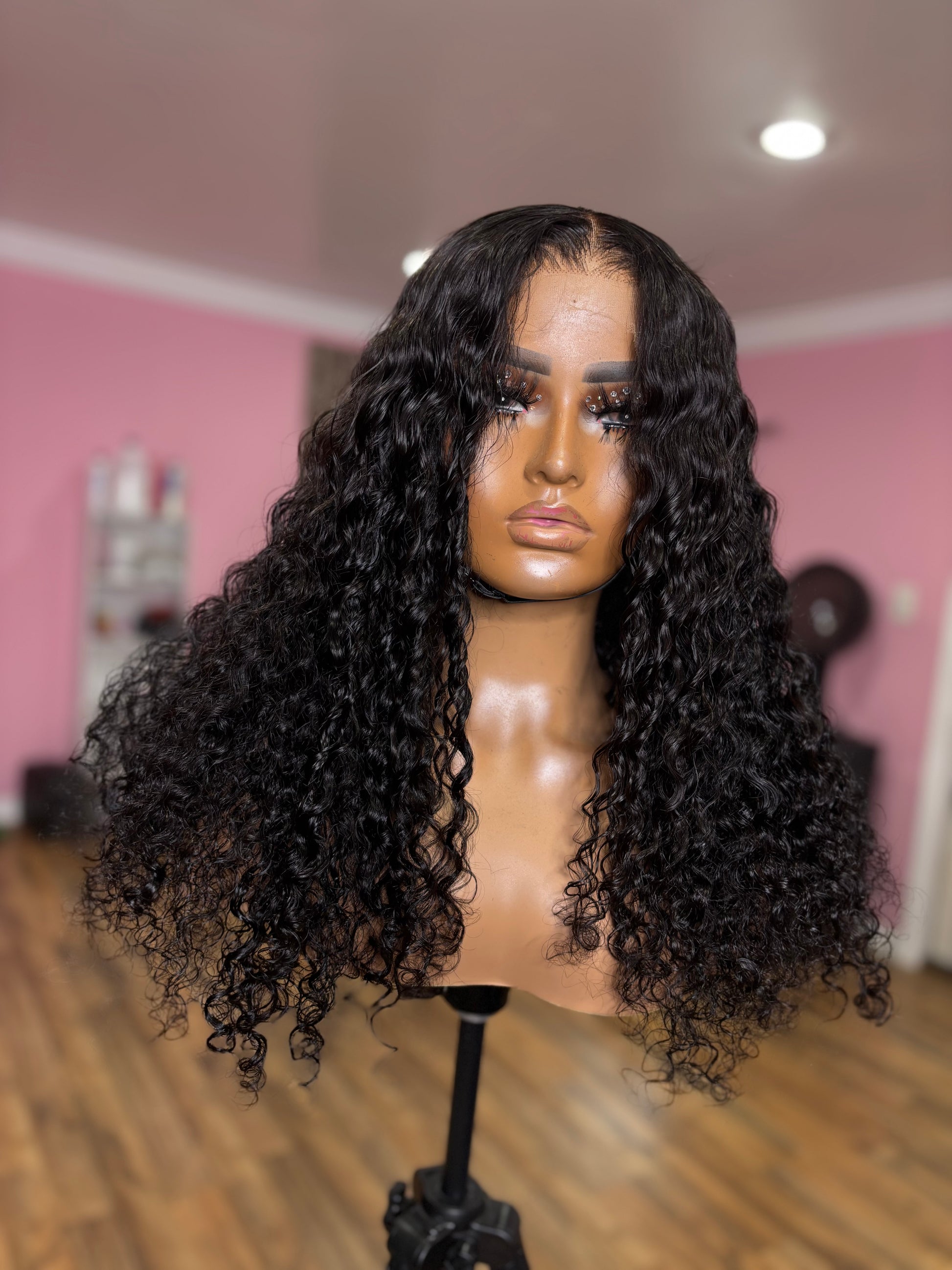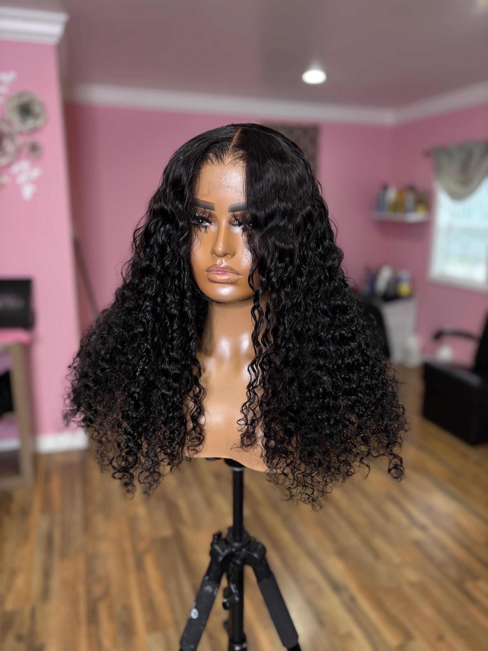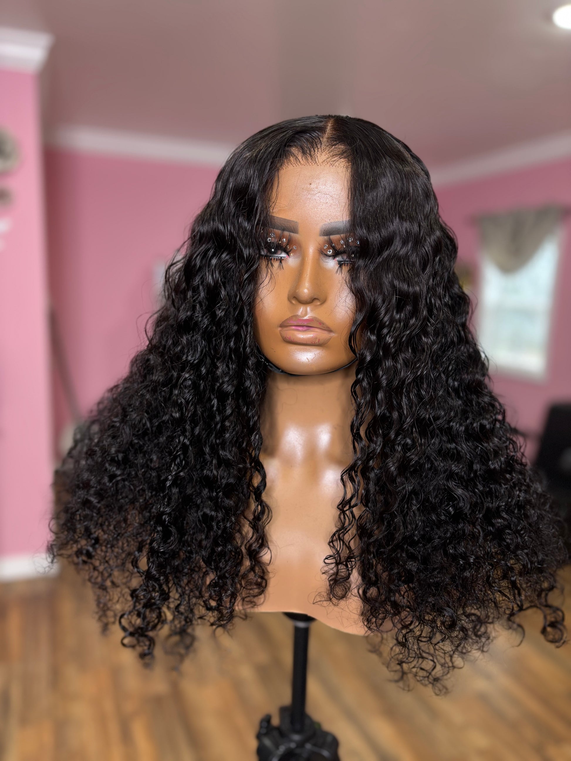 Plucked hairline/ bleached knots- Burmese Curly Double Drawn bundles with 4x4 Lace Closure-- Custom-made and constructed on a sewing machine.